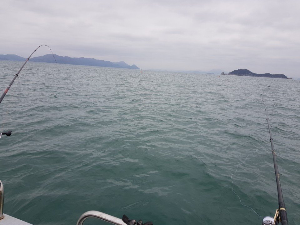 ⑥ 조황 요약 : 풍화리 통영호레져(대박레져2호점)에서 혼자 비온다는 예보로 사람이 없을것을 알고 혼자 갔다왔는데요.첫 입질은 이런 우럭 20정도ㅇ방생하고 기다리면서 지처갈때줌 60m앞에서 카고 정리하다 찌가 없어 지는 상황. 챔질하였는데. 묵직한 초리대가 수면까지 가져가면서 힘쓰는데 (마음속으로는 왔구나).긴장하면서 릴링하는데 3분정도 어느정도 힘빠진것을 느끼고올리는데. 하필 옆에 어선이 지나가면서 파도가 생기면서 잠깐의 공간이 고기가 빠지고 ㅡ.ㅡ 이런 허전함이 마음속으로는 모는욕은 다하고 한숨과 커피한잔..한번의 입질때문에 통영까지 왔는데요. 2시간의 시간 더 하여도 잡어 입질도 없어 나머지 생크릴은 밥주고 철수하였내요. 다음 도전 또 들어가야죠.