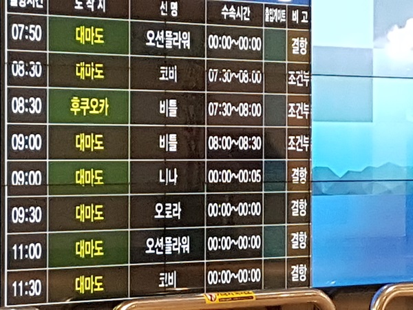 출발때부터 코비,비틀의 조건부 운항외엔 전부 결항!