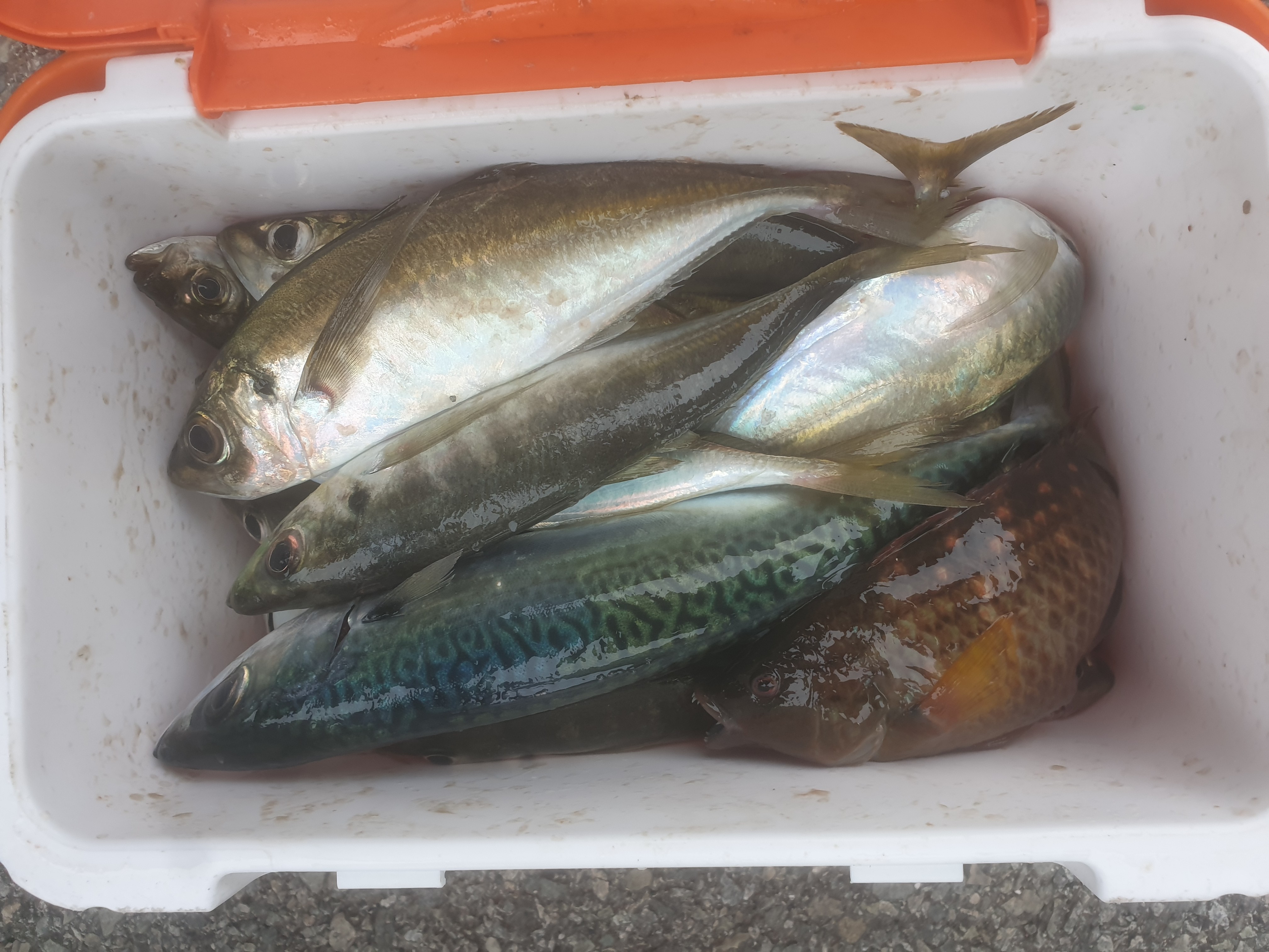 다 말았다 참 예매한 간격에 라인도 엉키고 배신하지 않는 생낚 준수한 전갱이 고등어가 올라옵니다.~