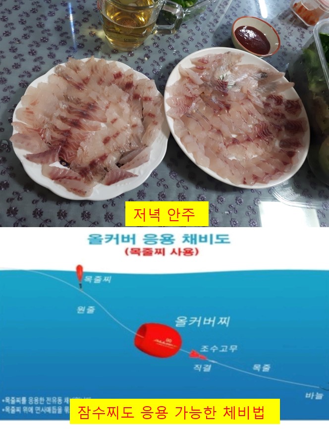 올커버 a2으로 시작을 하니 찌가 바다물에 조금 잠수하고 채비가 정열되면 입질이 오기시작을 합니다..