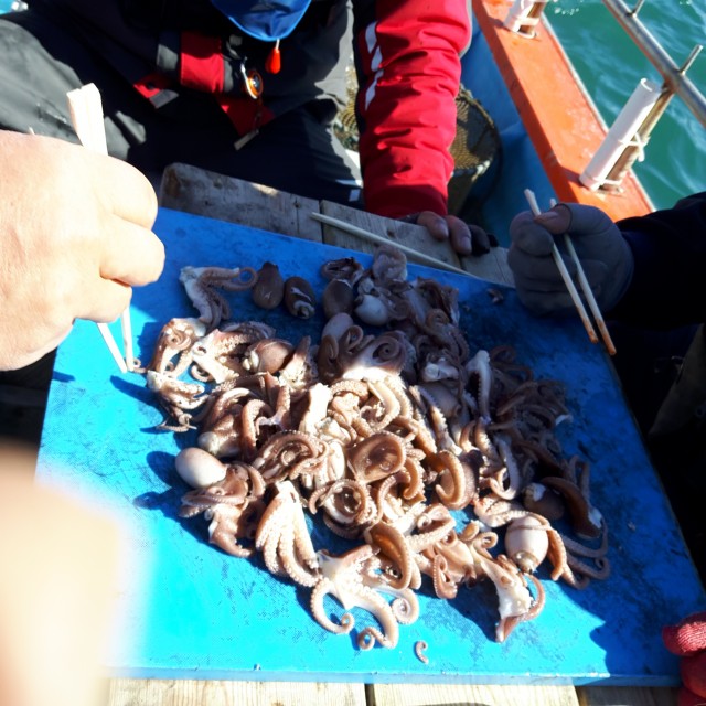 06:00 정실성 후배 총 6명 병풍호 독배로 소록도옆 금산앞바다 차가운 바람을 헤치고 시작하자마자 쭈가 나옵니다. 정실형 신발짝 갑오징어도 나오고 스타트가 좋습니다.
