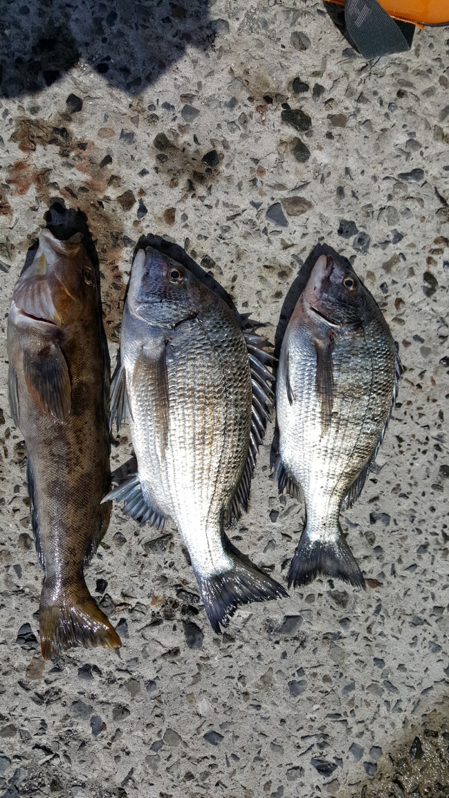 얼마의 시간이 흘러 멀리 흘리던중 찌가 순식간에 사리지는 것을 보고 챔질을 해서 감성돔 한마리 추가하고 .대물쥐노래미