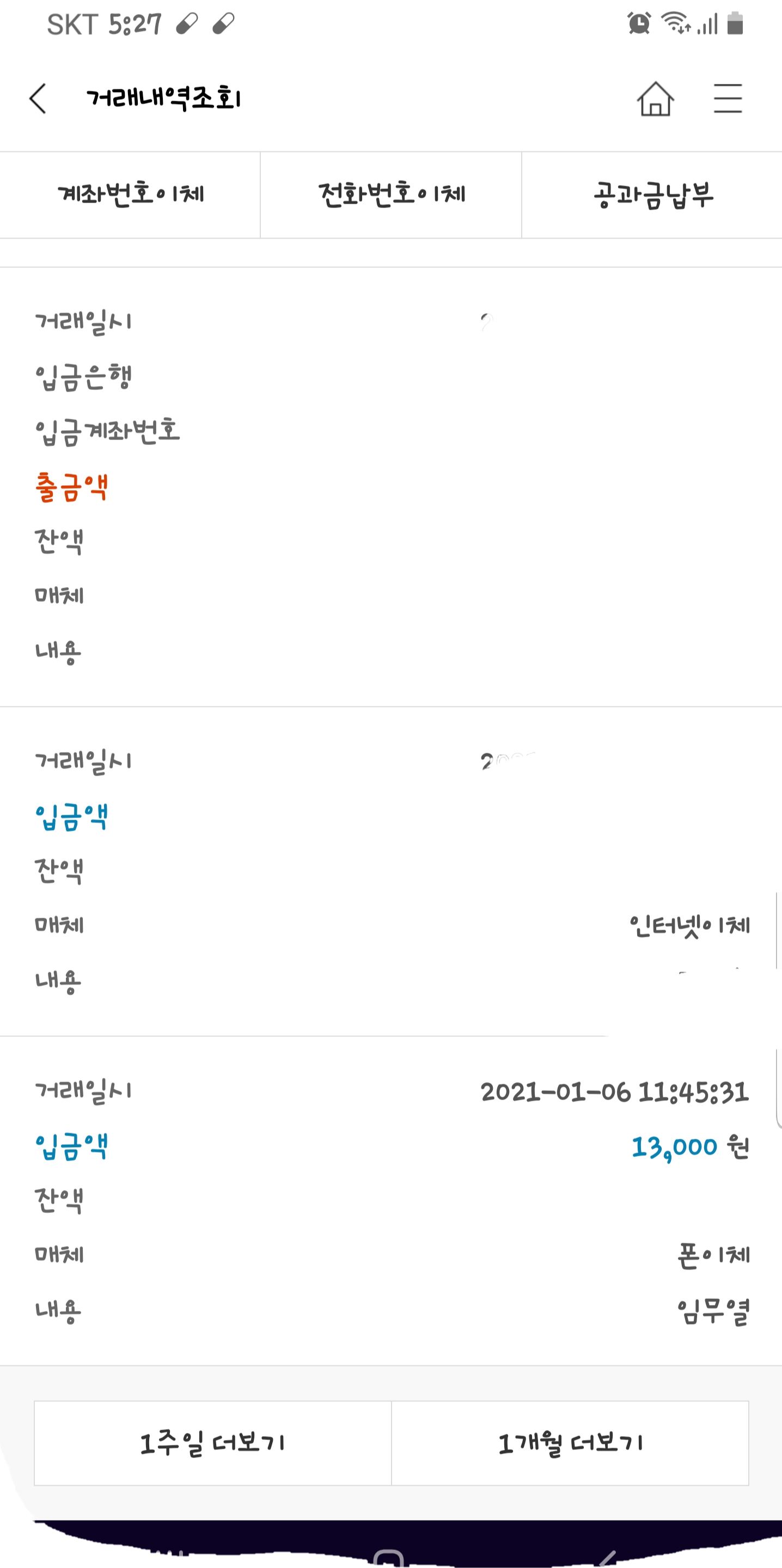 그리고 3일뒤 1만3천원 돌려받음.
