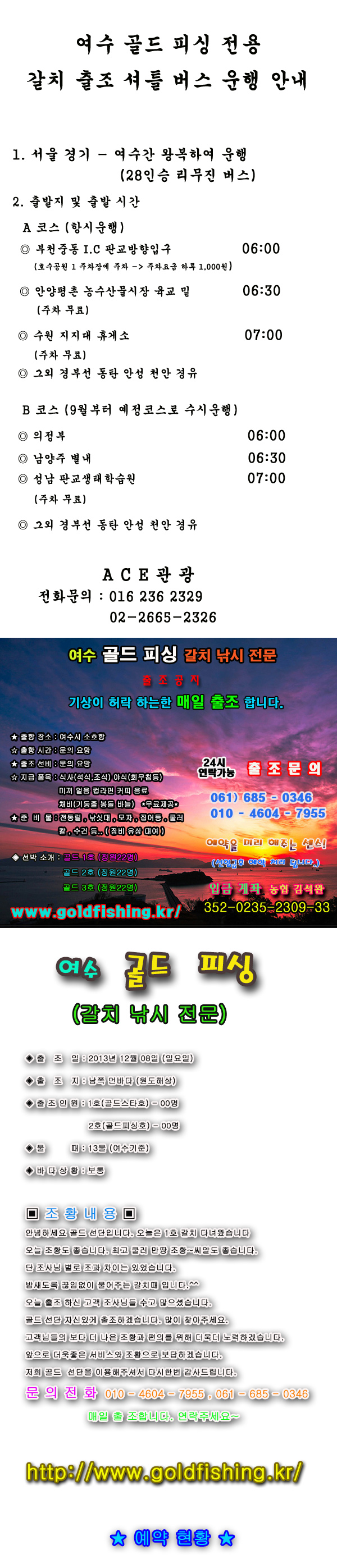 [골드피싱] 금일 갈치 조황 입니다. 조황 좋습니다. 여수골드피싱출조점 여수,광양 0 343 0 2013.12.09 17:14 2013년 12월 예약 현황 클릭href> 홈페이지 바로 가기 클릭href> 더많은 자료는 홈페이지로~~^^ 예약 문의 : 010 4604 7955 0 글쓴이 0 0 Lv.1 여수골드피싱출조점 점주선장 1,442 (14.4%) 안녕하세요 여수골드피싱입니다. 12.26 [골드피싱] 남쪽 아주먼바다 대갈치 조황!!! 조황 좋습니다. 12.25 [골드피싱] 여수 골드피싱 이젠 왕우럭 왕열기도 사냥 합니다.^^ 12.24 [골드피싱] 아주 먼바다 대갈치 최고 쿨러 조황까지.. 조황 아주 좋네요 12.15 [골드피싱]금일갈치조황 다음 출조는 2박3일 아주먼바다 갈치 우럭열기 병 12.09 [골드피싱] 금일 갈치 조황 입니다. 조황 좋습니다.