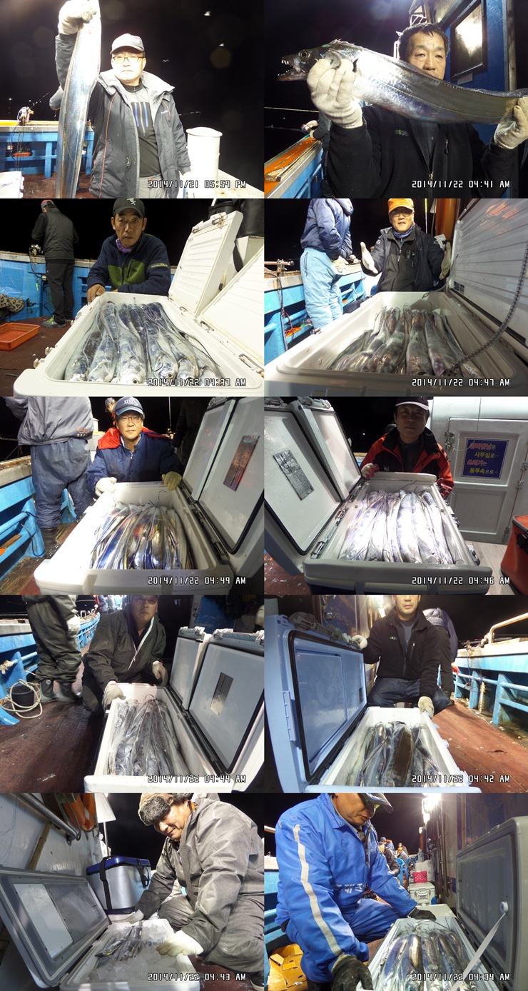 *.주 입질 수심층 38m (상층에서 입질이 이루어지며 현재 오징어 유입으로 미끼 및 갈치 따임손실많음)