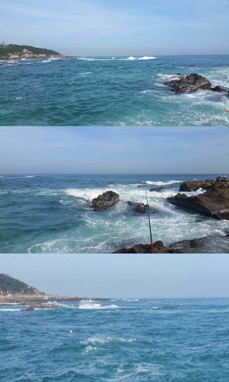 아직 낮은 갯바위나 방파제 일부는 파도가 치고올라오는 곳도 있지만 시간이 지날수록 점찾 점차