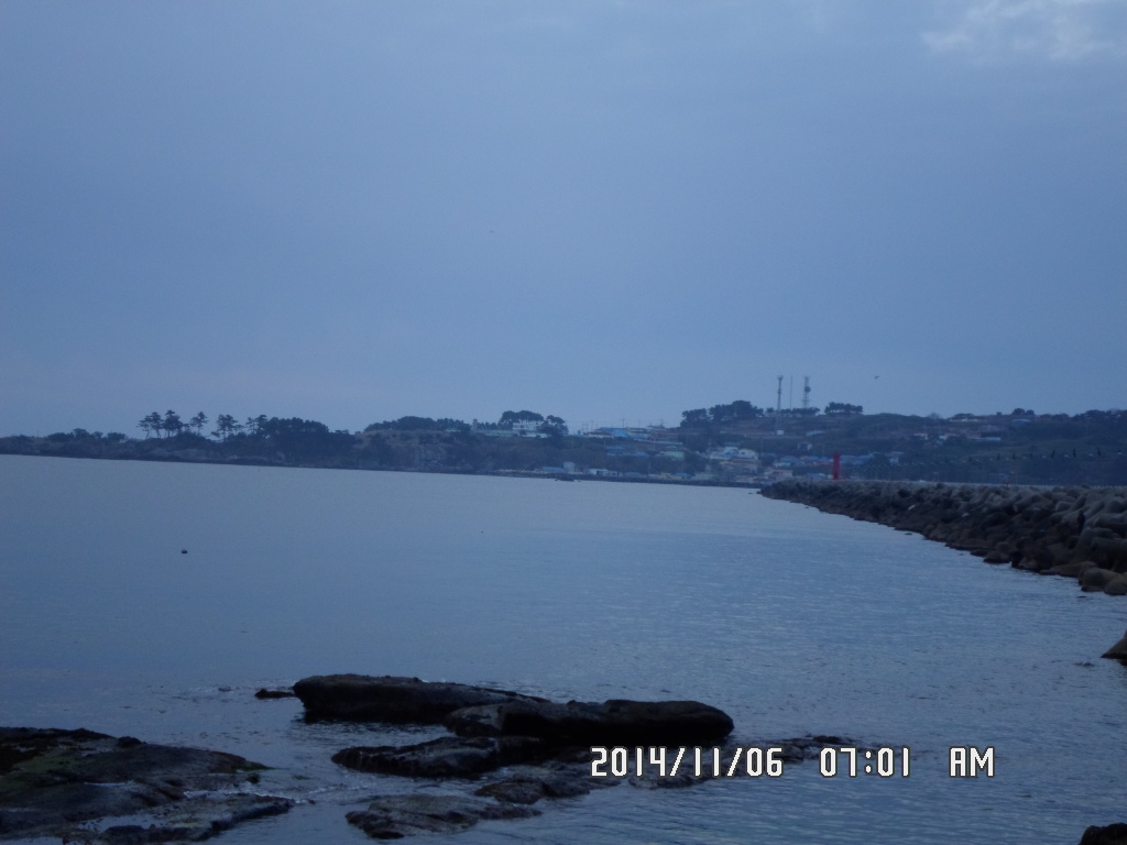 바람과 파도가 전혀 없는 바다는 엷은 구름이 다소곳이 내려 조용한 정적이 흐르는 아침 입니다.