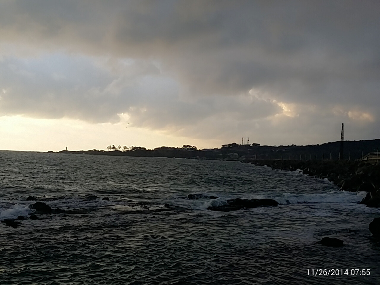 구름 사이로 햇살이 보일듯 말듯한 흐리고 너울이 많은 아침 입니다.