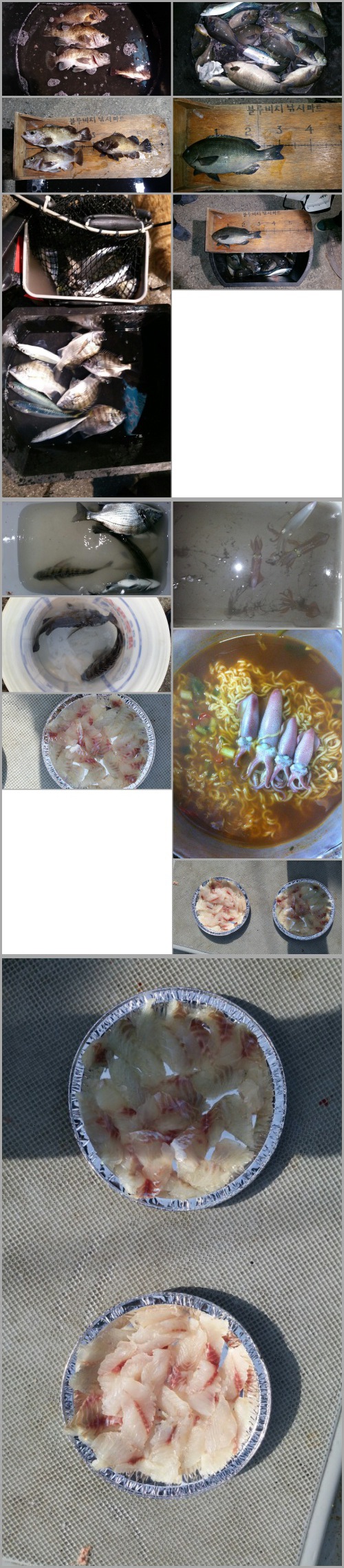 그리고 호래기 넣고 끓인 라면 사진과 갓 잡은 감성돔을 포 떠서 감성돔 회 한사라한