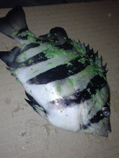 쥐치걸치기낚시에 강당돔이 걸려서