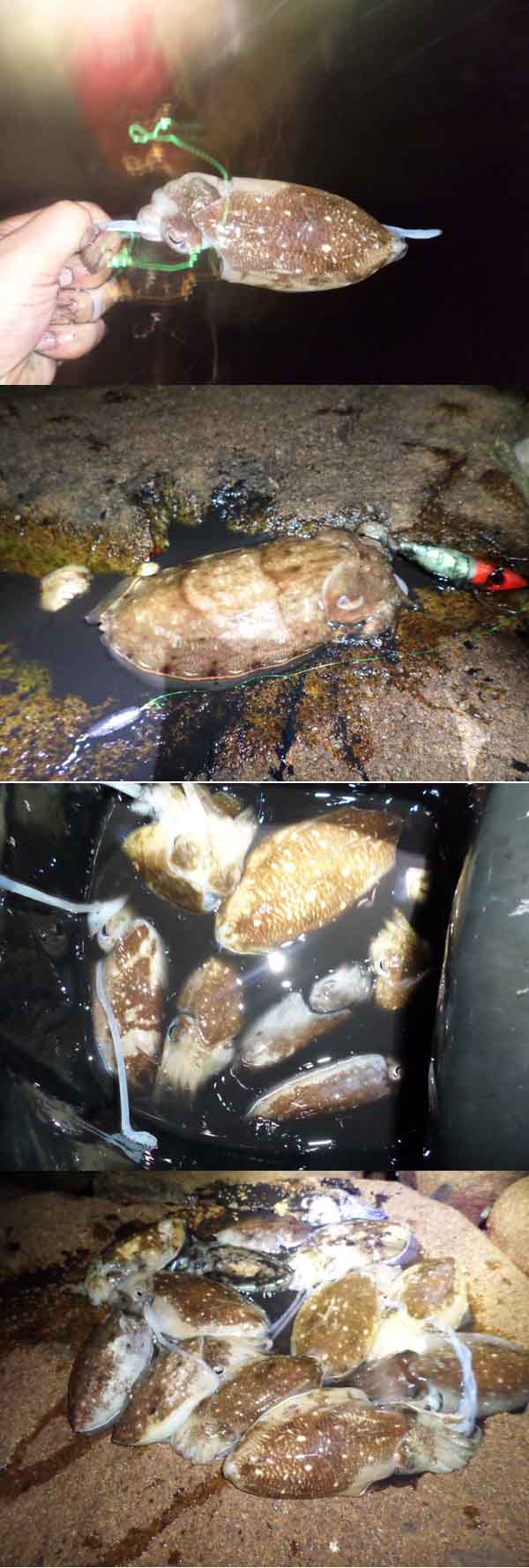 공략지점를 멀리~가까이 노련서 많은 갑오징어 조과를 올리고 특히 에기 바늘에 야간윔