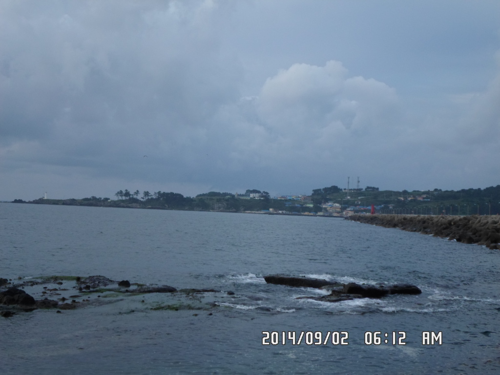 높은 구름 사이로 언듯언듯 햇살이 모습을 보이는 바다는, 약간의 너울과 북서풍이 부는 서늘한 아침 입니다.