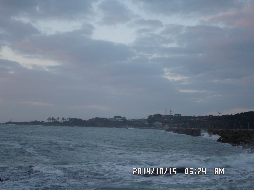 바람은 없으나 너울성 물결이 다소 높은 쌀쌀한 아침 입니다.