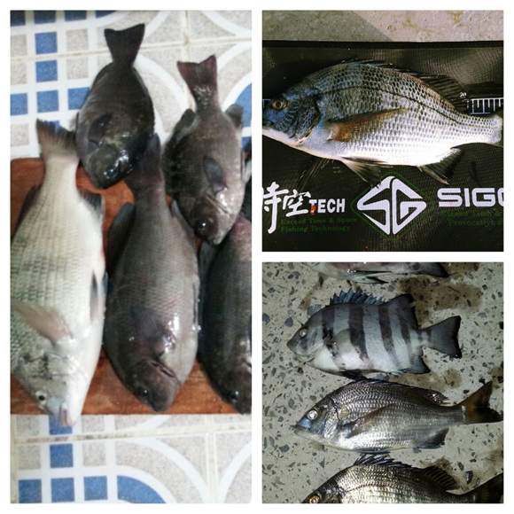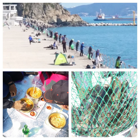 방금 방파제 순찰 갔다 왔는데 고기들이 다양하게 잡히고 있네요.