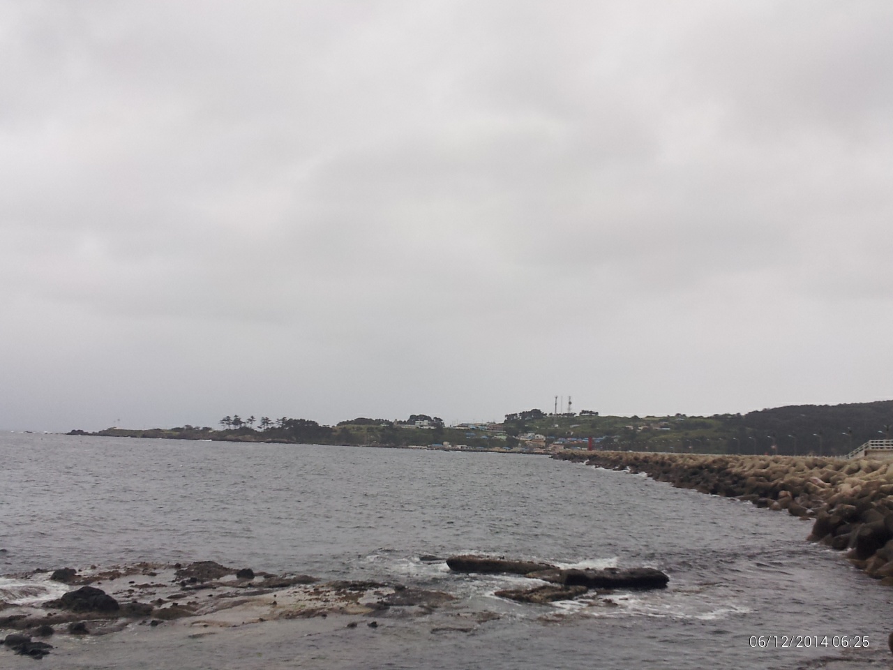 잔뜩 찌푸린 하늘엔 금방이라도 비가 쏟아질것 같은 바다는, 북동 기류가 조금 남아 있으며 침울한 아침을 맞고 있습니다.