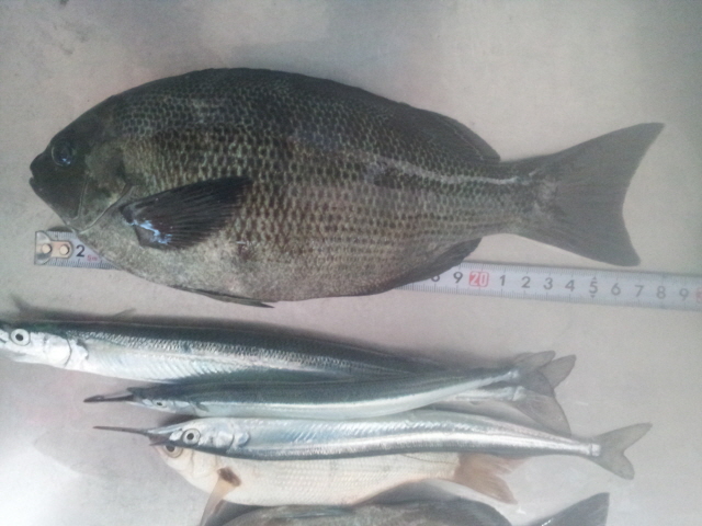 학공치 채비에 빵가루와 새우미끼에 벵에돔이 문다는것은 벵에가 핀다것 아니겠어요 .