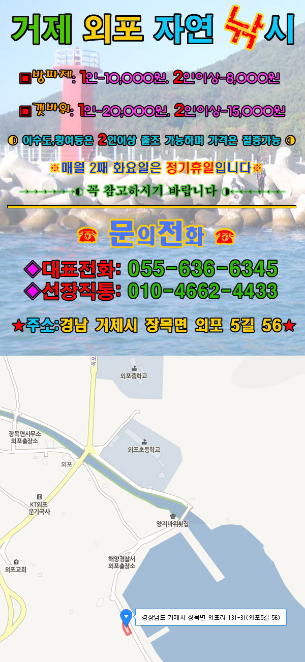 외포 자연낚시 방파제 갯바위 이수도 황여 조황