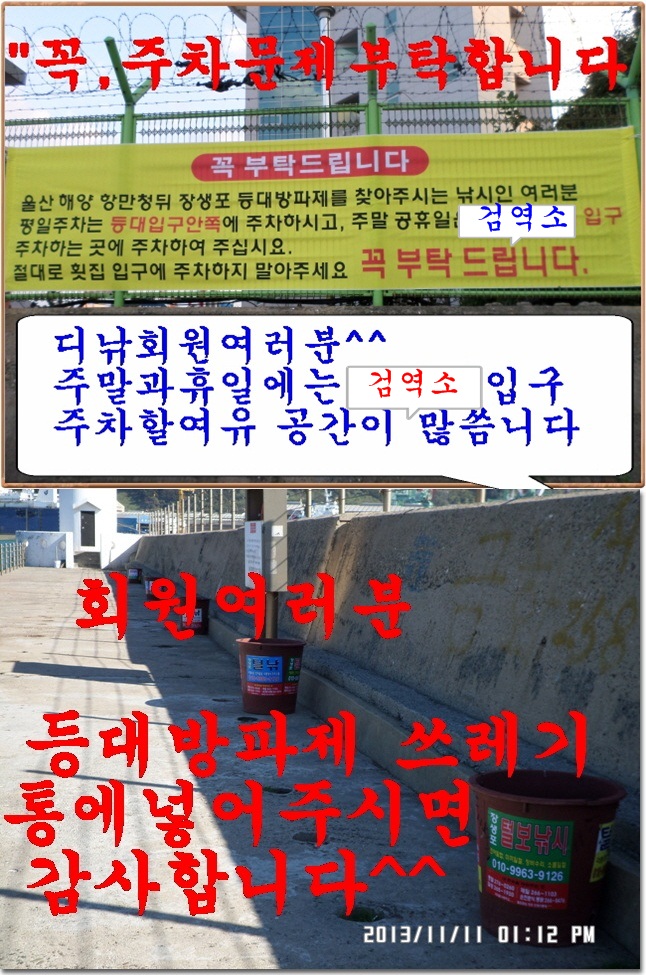 주간 또는 야간낚시시 쓰레기통이 여러군대있음니다 깨끗하게 즐낚하시다 돌아가주세요^^부탁드립니다^^