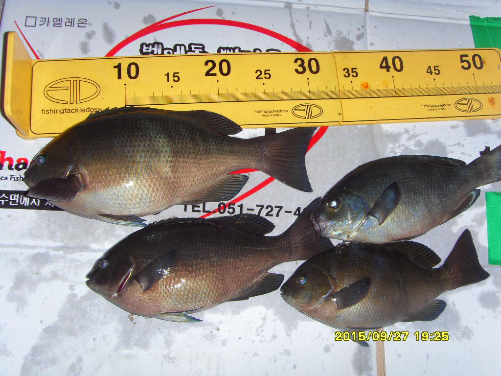 그사이에 대구에서 오신 조사님이 오전에는 잔씨알들만 잡으시다 해질녘에 벵에돔 31cm