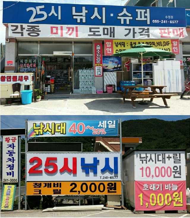 안녕하십니까~ 구산면 수정마을에 위치한 25시낚시 입니다. ^^*