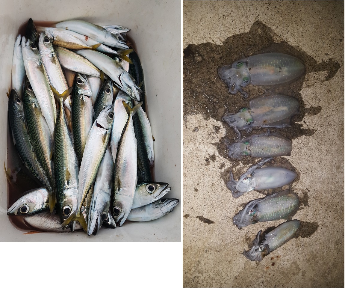 요며칠 거친 바다여건때문에 에깅낚시가 제대로 이루어지지 못했는데 오늘 비교적 얌전한 바다에 무늬가 심심찮게 올라왔네요.
