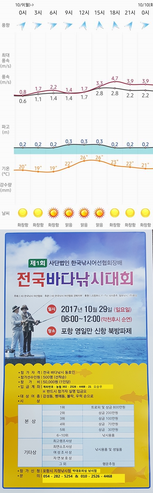 실시간 조황 및 날씨 정보를 수시로 업데이트 하오니