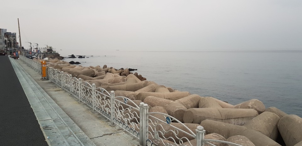 날씨는 구름낀날씨에 파도는 잔잔합니다.