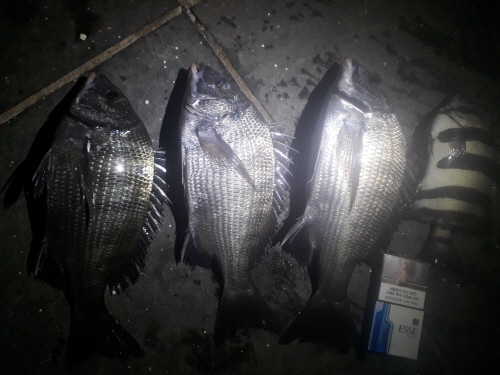 밤낚시에 더큰 돌돔 네마리 잡아오셨어요