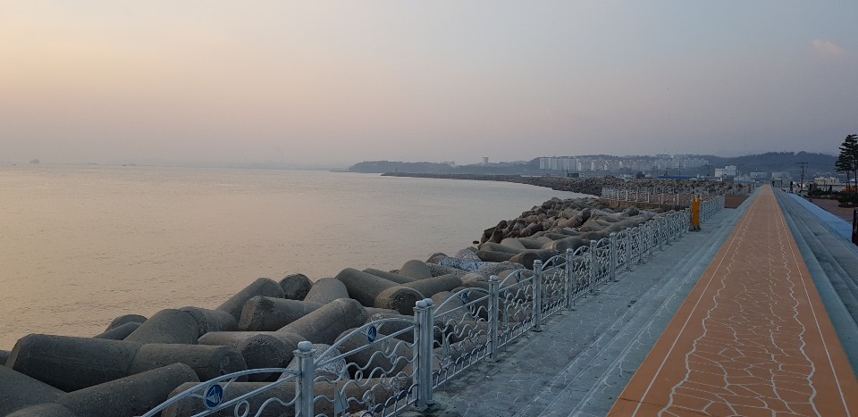 파도는 방파제 끝선을 살짝쳐줍니다.