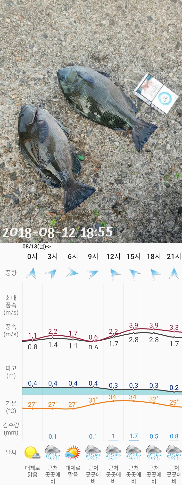 실시간 조황 및 날씨 정보를 수시로 업데이트 하오니
