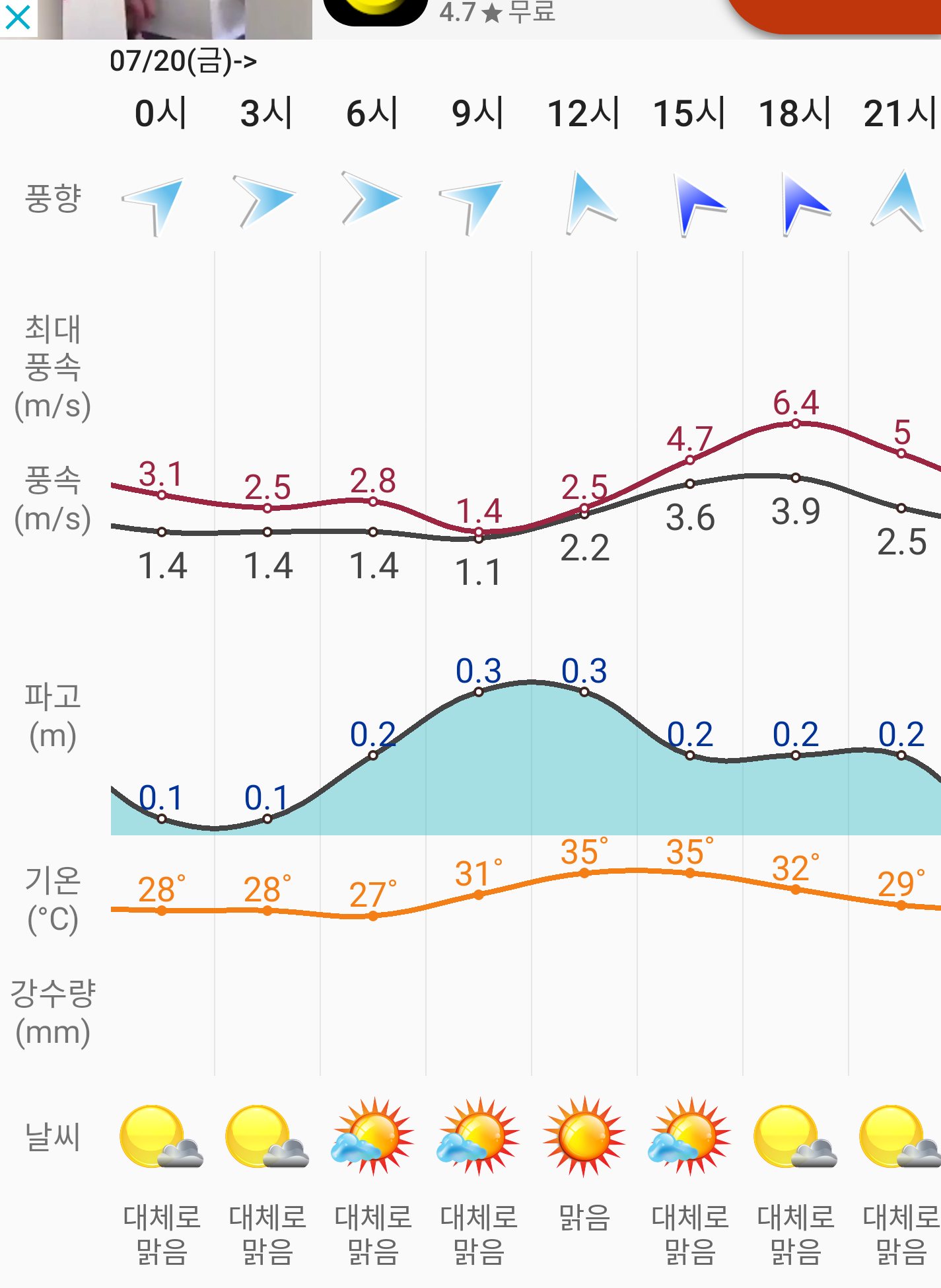 내일도 날 좋고 날 덥습니다.