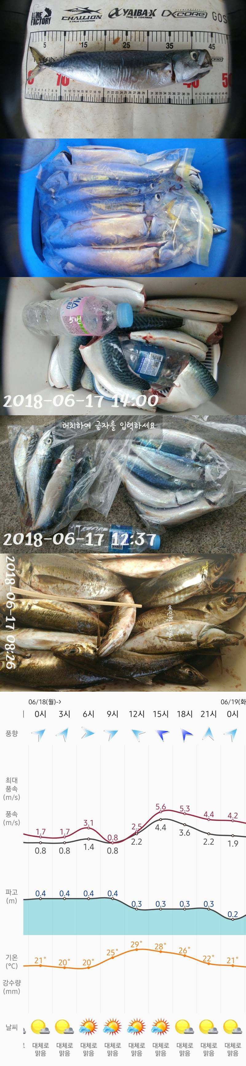 실시간 조황 및 날씨 정보를 수시로 업데이트 하오니