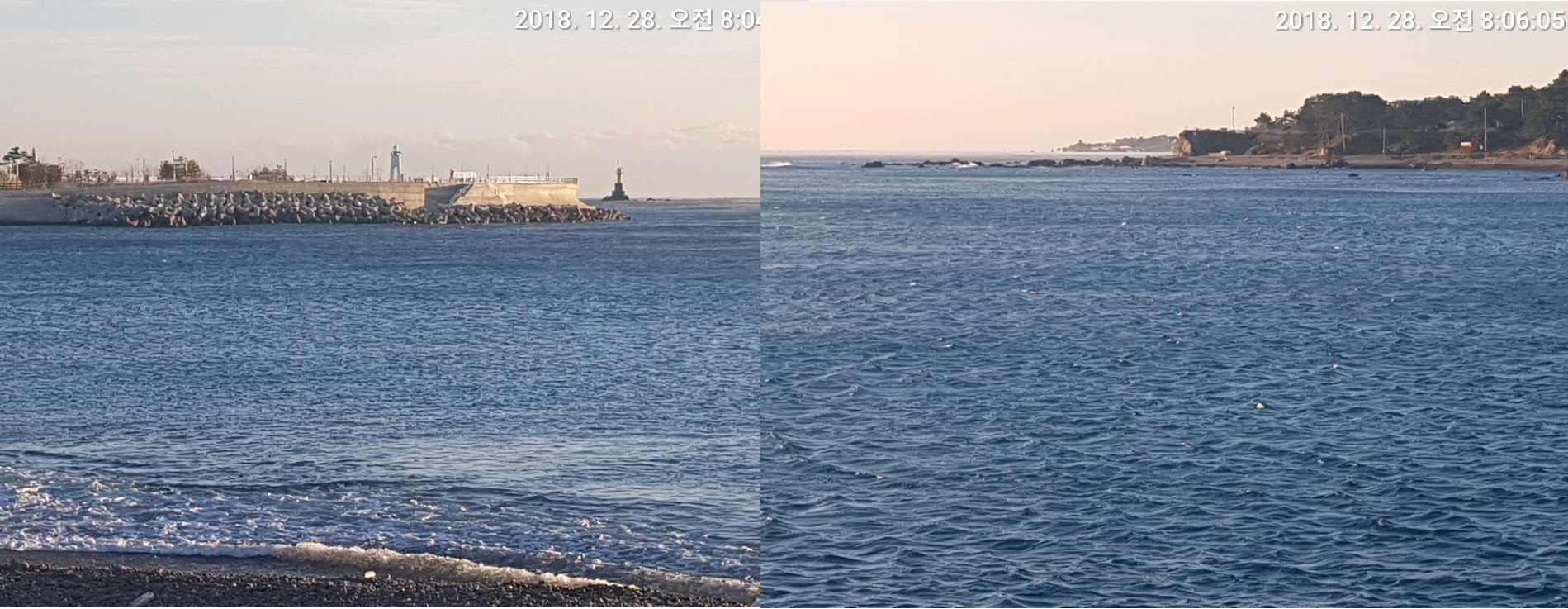 약한 파도와 물색은 탁하며 정확한 수온측정이 안되네요.