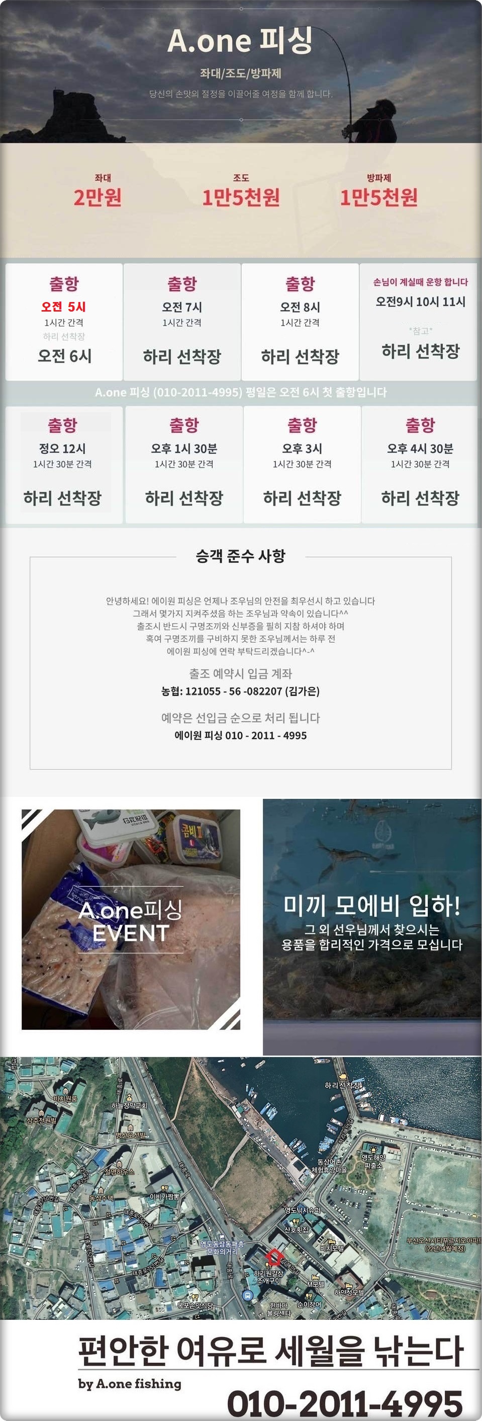 ※ 네비게이션 주소: 부산광역시 영도구 하리해안길 2 A-one 피싱