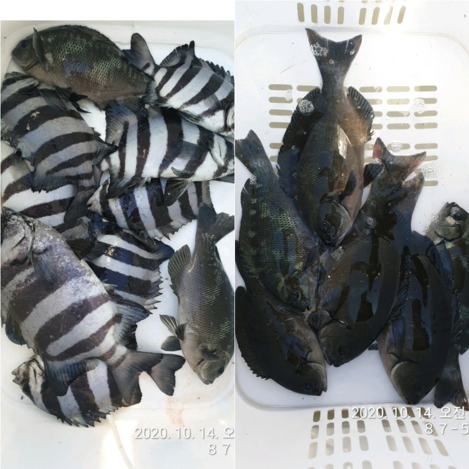 벵에돔과 뺀지급 돌돔 마릿수 확인하였습니다