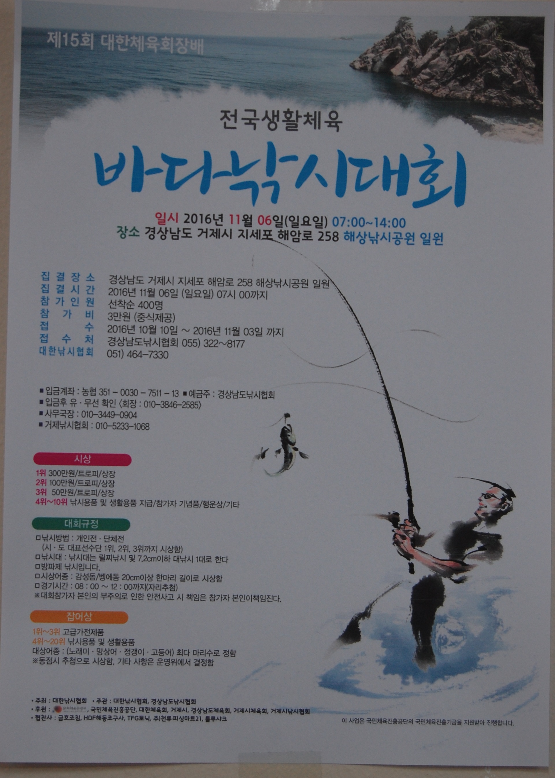 그런데 대한낚시협회에서 주관하는 전국생활체육 바다낚시대회(11월6일)는 시상어종이 '감성돔 20cm이상 한마리 길이'로 되어 있습니다.