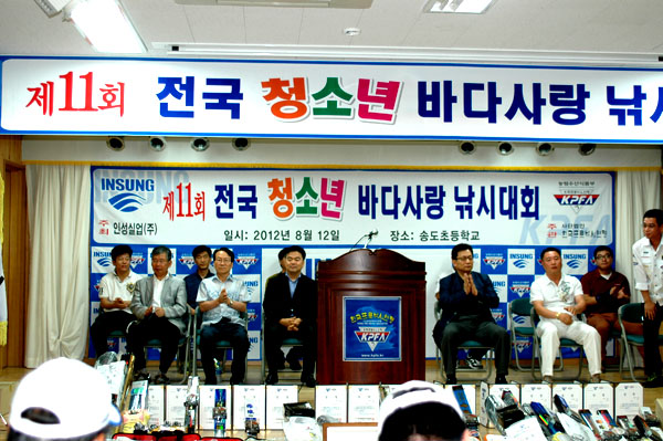 2012년 8월 12일 (일) 제11회 전국청소년 바다사랑 낚시대회를 전국 초.중.고생 120명과 학부모 150명이 송도초등학교 집결, 암남공원 및 동방파제 일원에서 대회를 개최하였습니다.