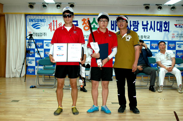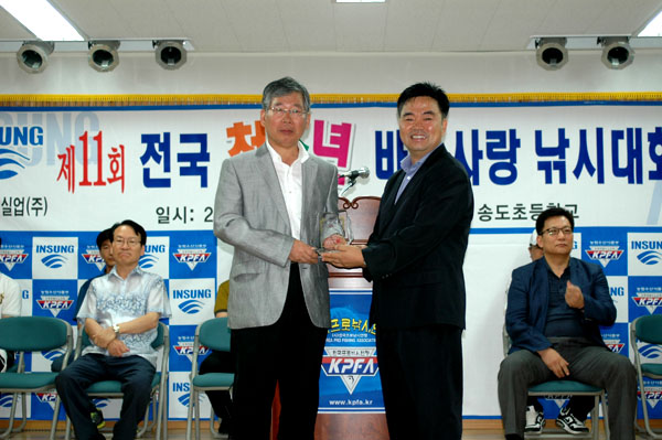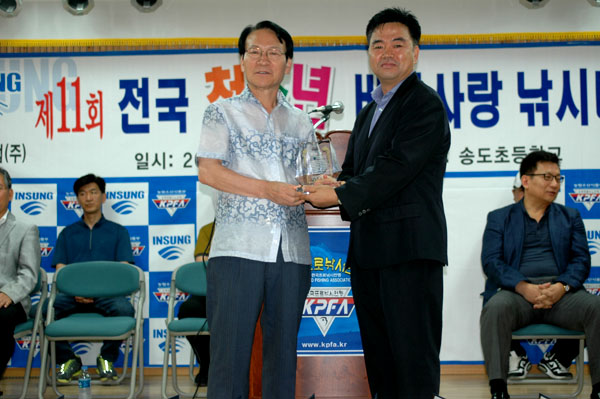 초등부 자연보호상 수상자와 부경조구협회 오계원 사무국장님