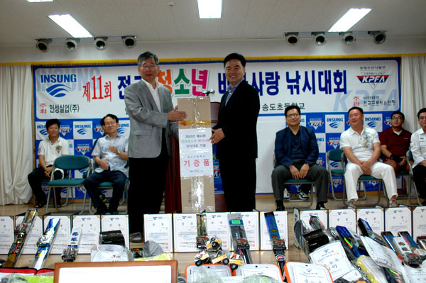 송도초등학교 낚시용품 기증품 전달