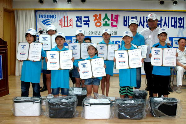 2012년 제11회 전국 청소년 바다사랑 낚시대회 참가자 전원 단체 사진