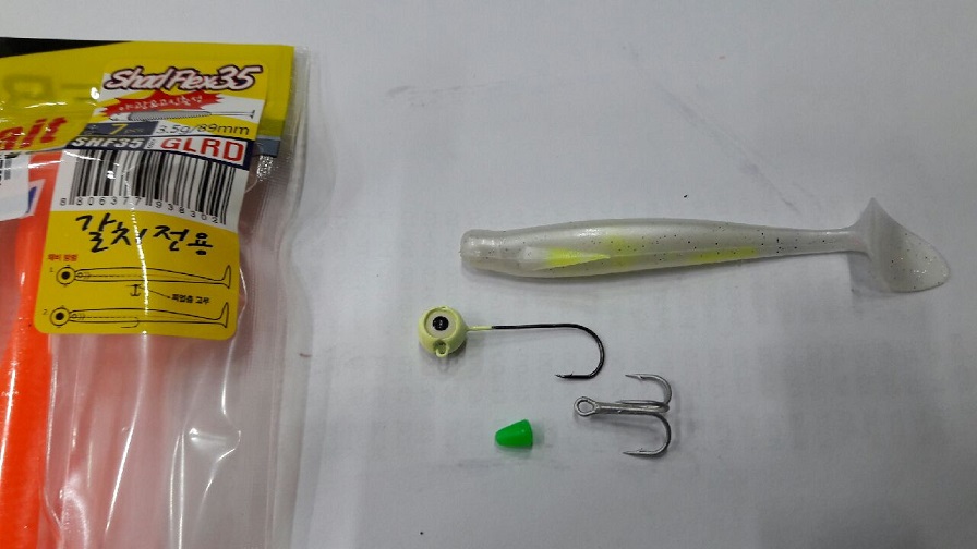 준비물 : 지그헤드, 갈치웜, 트레블훅, 멈춤고무.