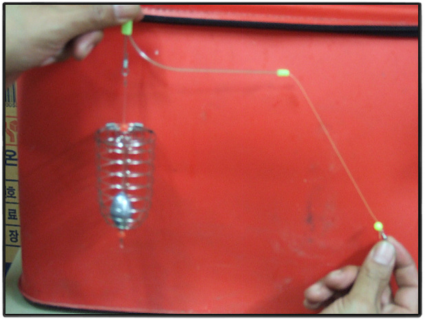 위 카고 채비는 작년 여름에 제가 직접 고안하여 실제 사용해 본후,