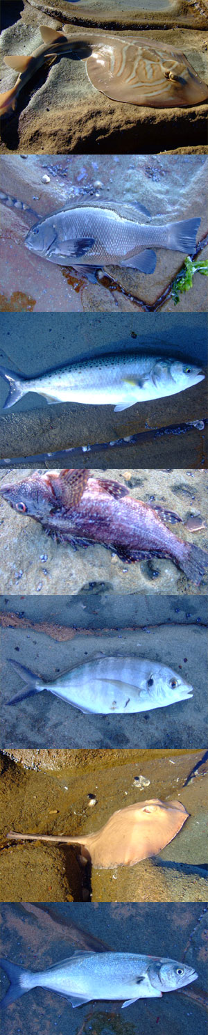 1,6번은 가오리류일테고 2번은 그 유명한 드러머(호주벵에돔), 3번은 호주연어, 4번 노래미로 추정(^^). 5번은 생긴형태로 봐서는 잭피시 종류같아보이고 맨 마지막은 진짜 모르겠습니다.