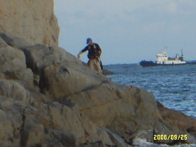 낚시후 철수전 떨어진 밑밥을 청소하시는 조우님
