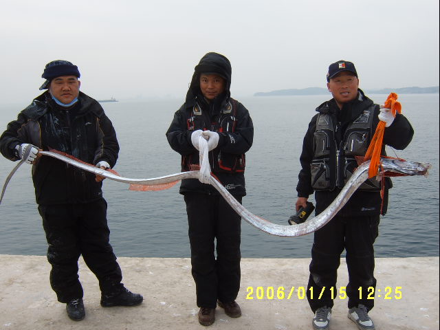 산갈치 입니다 보통 심해 깊은 곳에 서식하는데 종종 낚시에 올라오기도 합니다. 63빌딩에 가면 박제도 있습니다. 사진의 산갈치는 보통 사이즈로 더 큰놈들도 잡혔던 적이 있습니다.