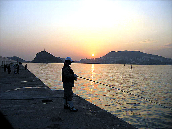 오륙도 일자방파제에서 저녁낚시하시는조사