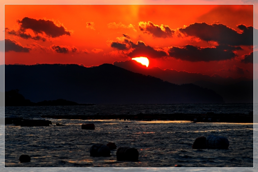 붉게 타들어가는 통영바다의 일몰을 담아보았습니다.