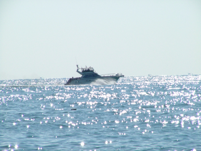 바다위의 신나게 달리는~~2층 높이되는 신형 낚시선 인가베~~~