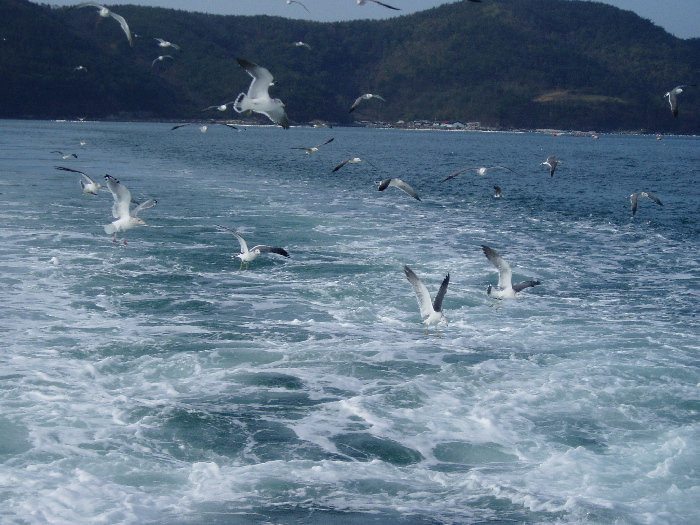 한산도에서 귀선길의 갈매기.