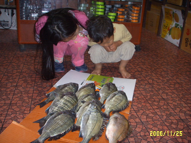 낮에는 감성돔을 무지 많이 낚아 좋아하던 아이들
